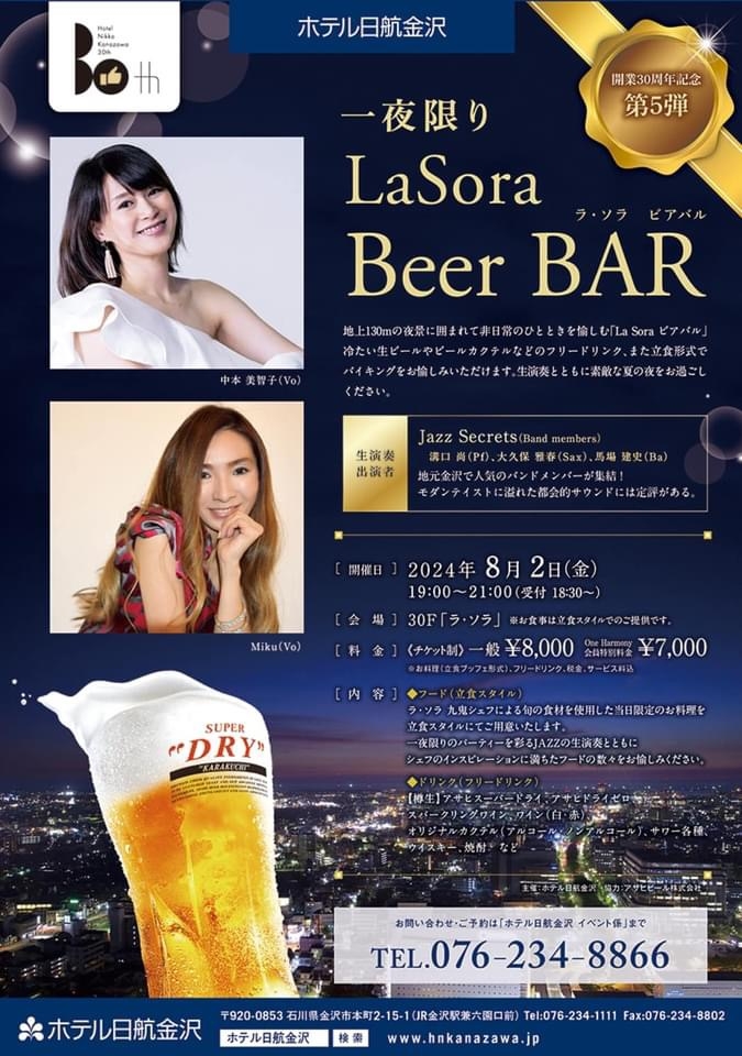 さて明日8/2はホテル日航金沢30階のLa Soraにて