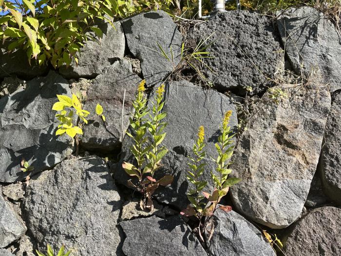 石垣アート🌼 石垣が好きなんです。 夜ライトアップしてある石垣なんてめちゃくちゃかっこいい😎 そして石垣から生えている野の草花が大好きで写真を撮っています。 太陽へとむかう姿はそれだけで完璧で 美しい姿をしている。 just rightって感じ。。。