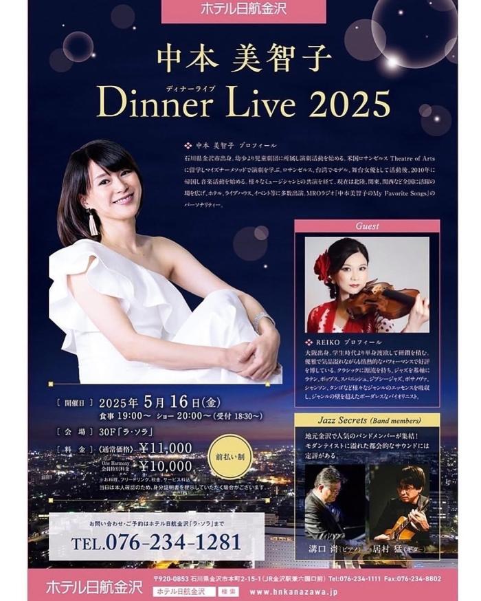 5/16はホテル日航金沢30階のLa Soraにて「中本美智子ディナーライブ2025」がありました。