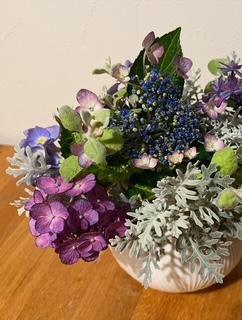 今年もあじさいをいただきました♡ 今年もあじさいをいただいてきました! ゆみさんのお宅にはいろんな種類のあじさいがあるんですが、毎年季節になると「取りにおいで~」と連絡をくださるのです。 今年もたくさんいただいてきました。 家中の花瓶を出してきて、あ~でもない、こ~でもないと組み合わせていきます。 その時間がたのしい。。。。 あじさいっていろんな種類があるんです。アナベルがかわいくて大好き! 少し元気がなくなってきても、水切りをしてあげると復活して長く楽しませてくれます。 微妙な色合いがいいんだよなぁ!