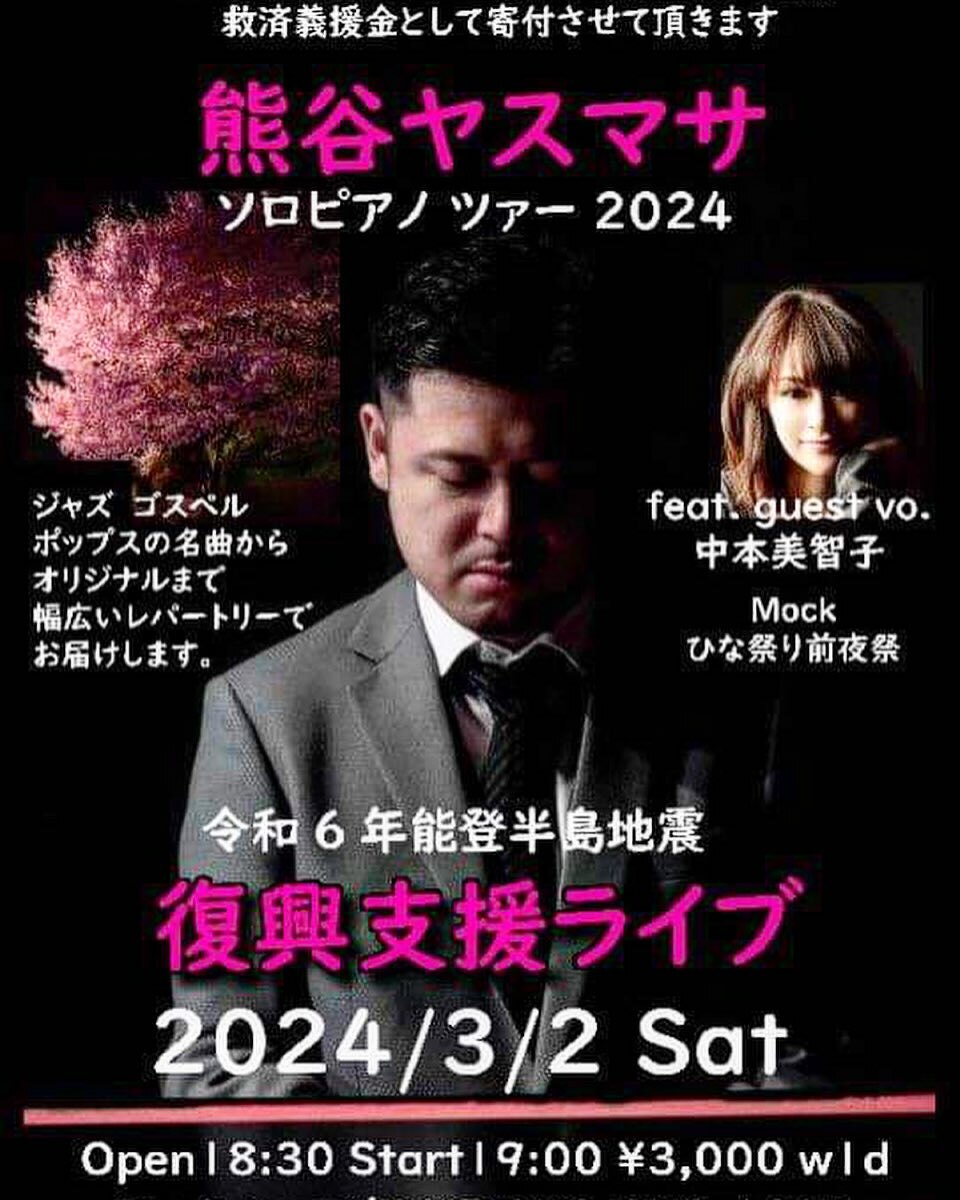 ピアニスト 熊谷ヤスマサさん復興支援ライブ シェア金沢MOCK 3/2 19:00-