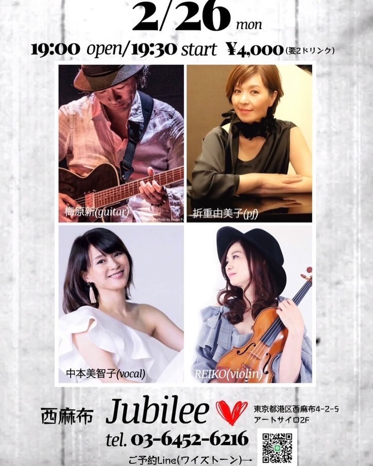 本日(2/26) 西麻布Jubileeに出演します