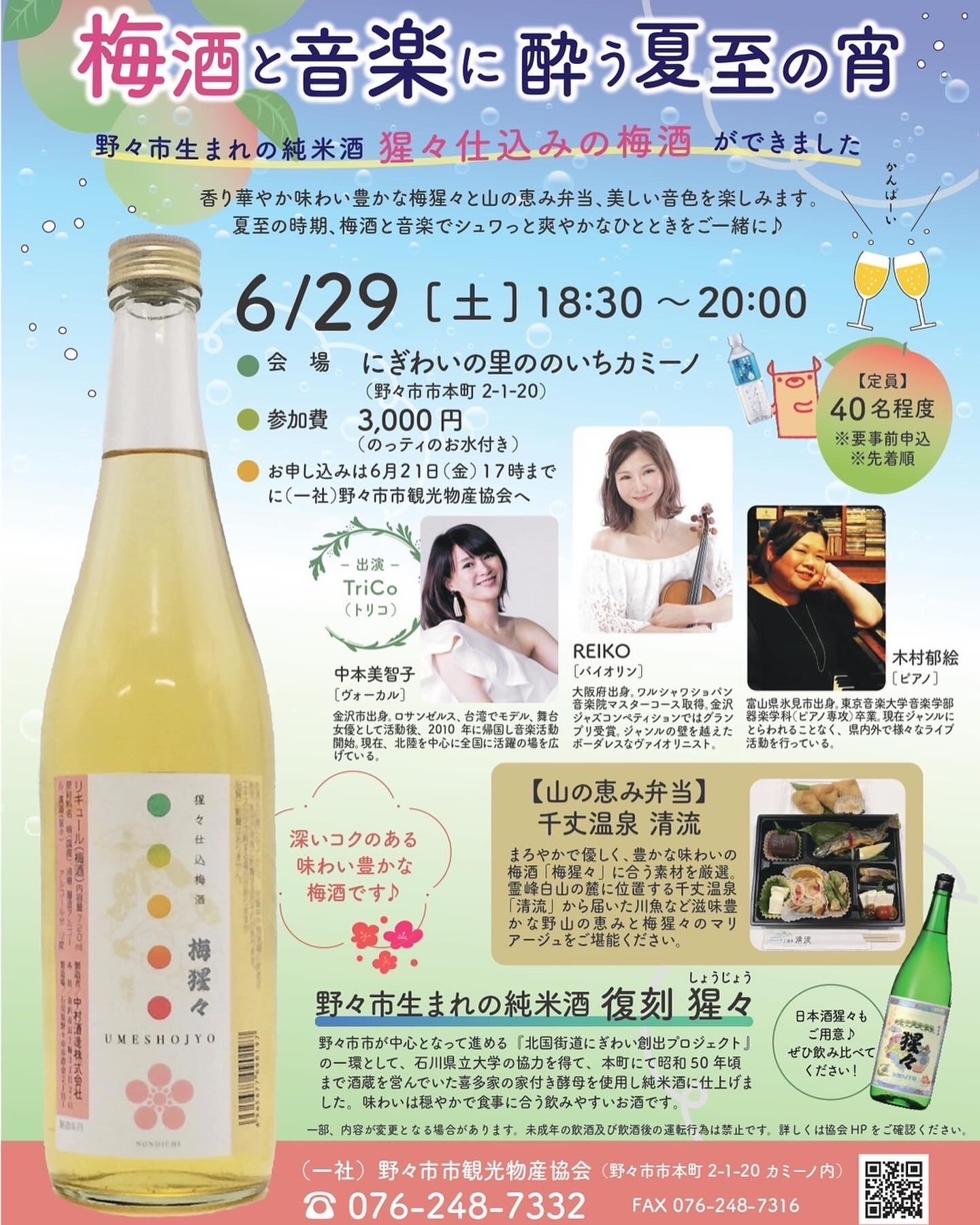 6/29(土)カミーノ『梅酒と音楽に酔う夏至の宵』 18:30スタート 3000円